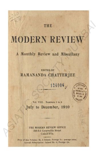 | Publisher | : | The Modern Review Office 210-3-1 Cornwallis Street |