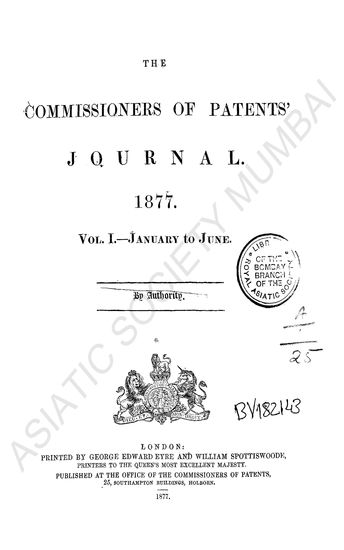 | Publisher | : | The Office of the Commissioners of Patents 25, Southampion Buildings, Holborn |