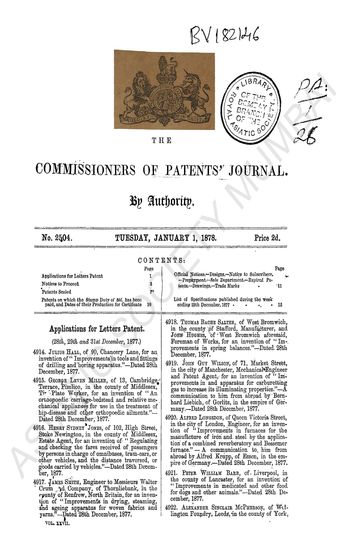 Commissioners of Patents Journal.Tuesday, Junuary 5, 18 ...