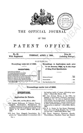 Commissioners of Patents Journal. Tuesday, April 1, 188 ...