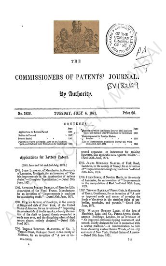 Commissioners of Patents Journal. Tuesday, July 4, 1871 ...