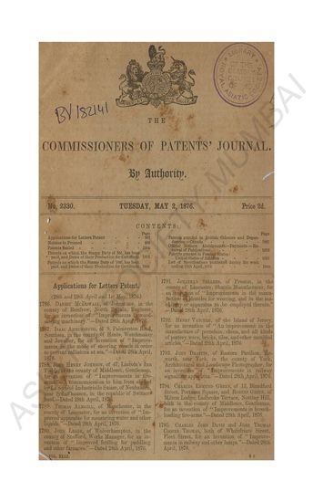 Commissioners of Patents Journal. Tuesday, May 2, 1876.