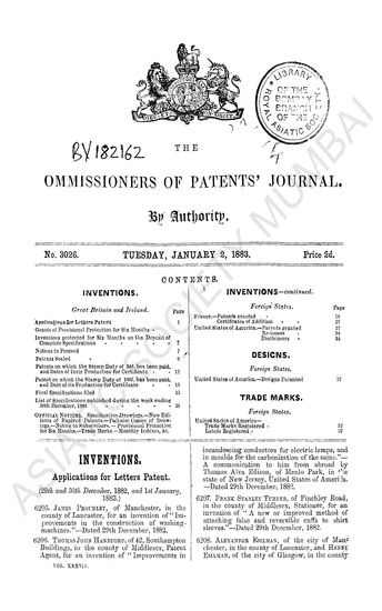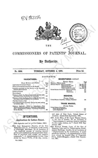 Commissioners of Patents Journal. Tuesday, October 2, 1883.
