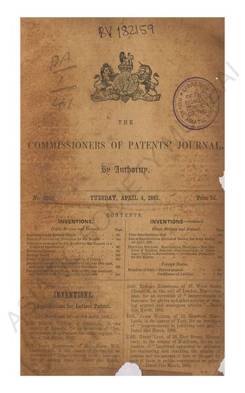 Commissioners of Patents Journal. Tuesday, April 4, 188 ...