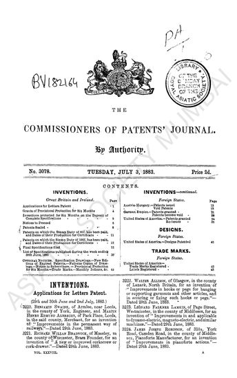 Commissioners of Patents Journal. Tuesday, July 3, 1883 ...