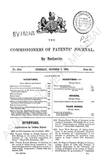 Commissioners of Patents Journal. Friday, October 3, 1883.