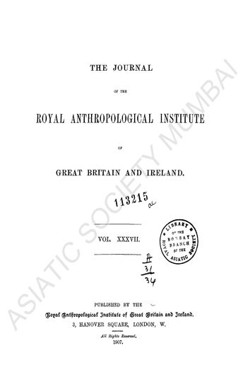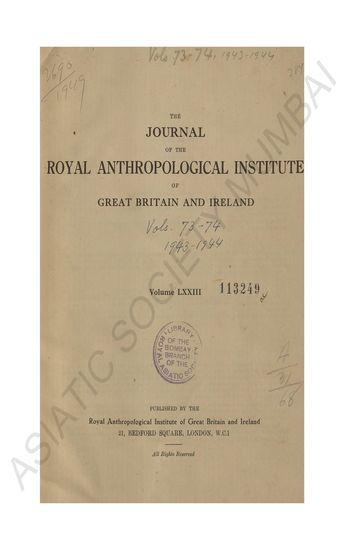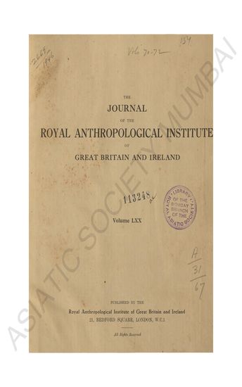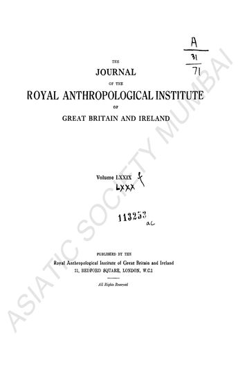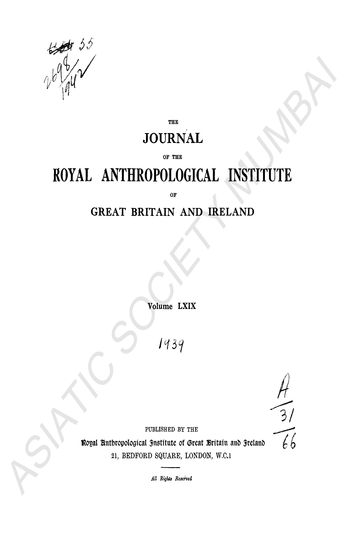 | Publisher | : | Royal Anthropological institute of Great Britain and Ireland, 21, Bedford Square |