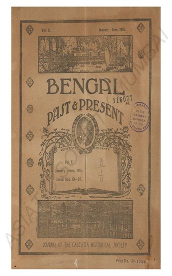 Bengal past and present, Vol. X, Serial Nos. 19-20, Jan ...