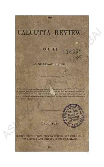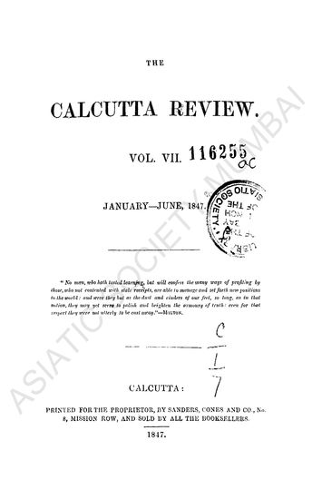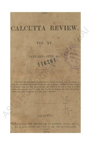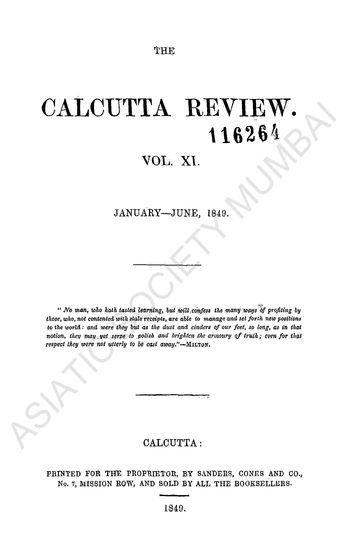 Calcutta Review, Vol. XIII, January-June, 1850.
