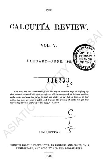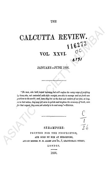 Calcutta Review., Vol. XXVI, January-June, 1856.
