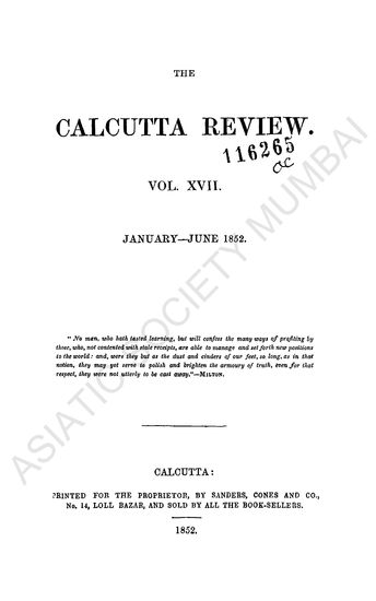 Calcutta Review., Vol. XVII, January-June, 1852.
