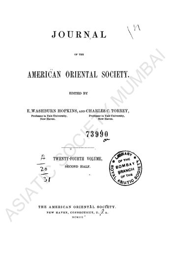 | Subject | : | Oriental philology; American Oriental Society |