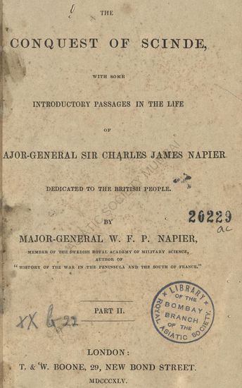 | Subject | : | Pakistan--Sindh Conquest of Scinde (Napier, William Francis Patrick) Napier, Charles James, 1782-1853 India Outram, James, 1803-1863 Soldiers Soldiers Colonies--Administration |