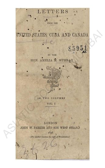 | Subject | : | United States Travel Cuba Canada Slavery Murray, Amelia M. (Amelia Matilda), 1795-1884 |
