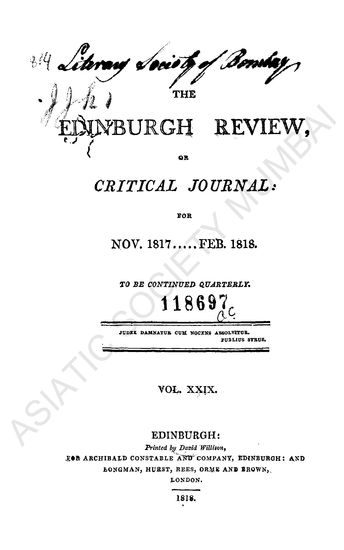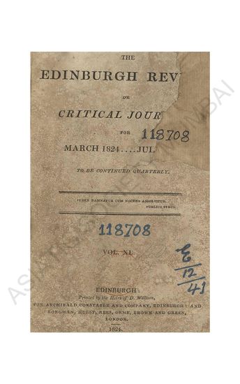 | Publisher | : | Archibald Constable and Company, Edinburgh ; and Longman , Hurnter, Rees, Orme and Brown, London |