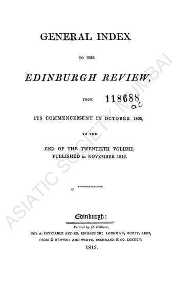 | Subject | : | Scottish periodicals World history--Periodicals Edinburgh review (1802) English literature English periodicals |