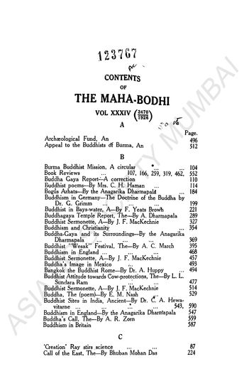 Maha- Bodhi, Vol XXXIV, 1926 February…