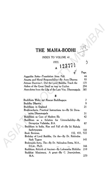 Maha-Bodhi The Maha- Bodhi Indix to Vol XLIII 1935….