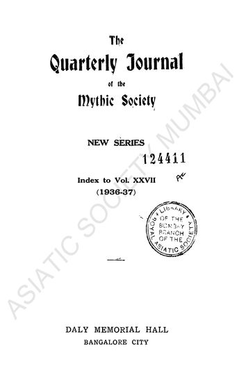 Quarterly Journal of the Mythic Society. New Series Ind ...