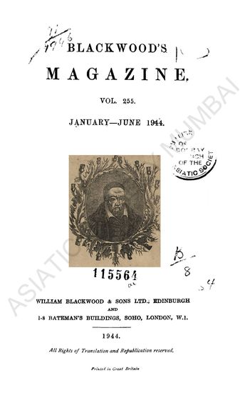Blackwood's Magazine. Vol CCLV. January- June, 1944.