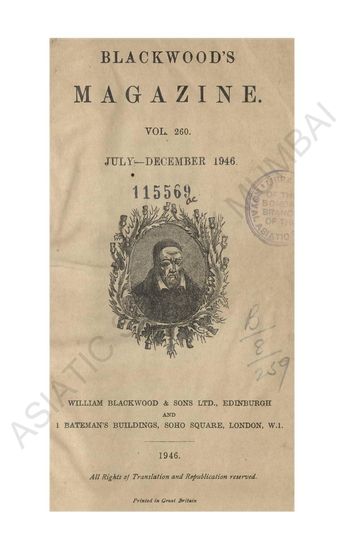 Blackwood's Magazine. Vol CCLX. July- December, 1946.