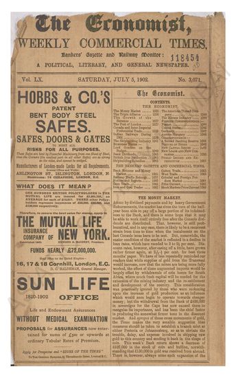 Economist Weekly Commercial Times. banker's gazette and railway monitor: A Political, Literary, and General New Paper. Vol LXII. July 2. 1904.