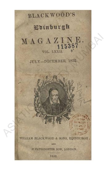 Blackwood's Edinburgh Magazine. Vol LXXII. July- Decemb ...