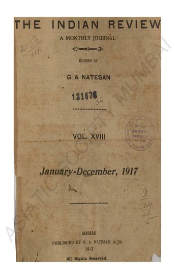 Indian Review A Monthly Journal. Vol XVIII. January - D ...