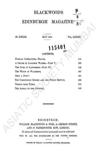 Blackwood's Edinburgh Magazine. Vol LXXXV, May, 1859.