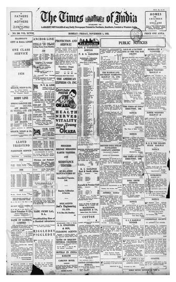 Times of India, November 01, 1935.