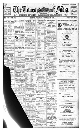 Times of India, November 01, 1927.