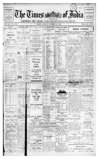 Times of India, November 27, 1933.