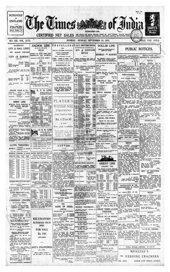 Times of India, September 18, 1933.