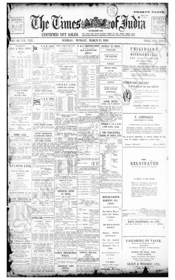 Times of India, March 11, 1929.