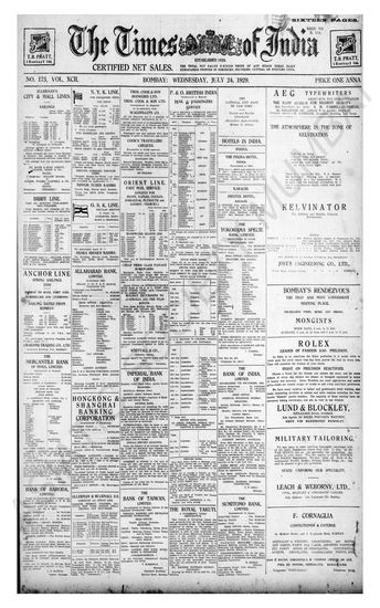 Times of India, July 24, 1929.