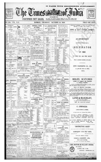 Times of India, October 24, 1929.