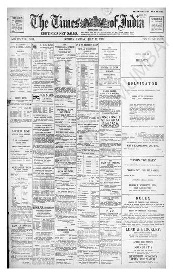 Times of India, July 12, 1929.