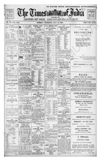 Times of India, July 18, 1929.