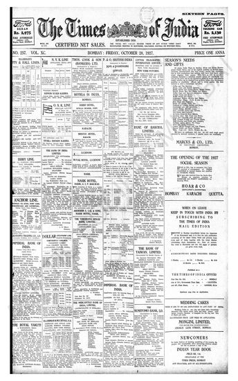 Times of India, October 28, 1927.