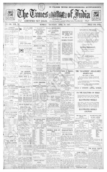 Times of India, April 28, 1927.