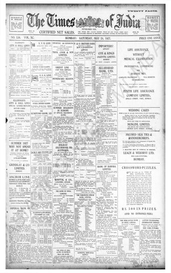 Times of India, May 28, 1927.