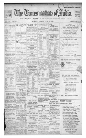 Times of India, June 28, 1927.