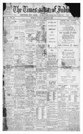 Times of India, March 29, 1927.