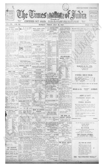 Times of India, July 29, 1927.