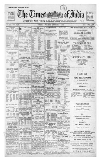 Times of India, September 04, 1930.