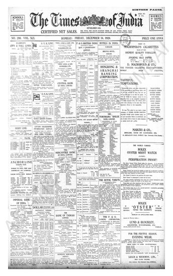 Times of India, December 14, 1928.