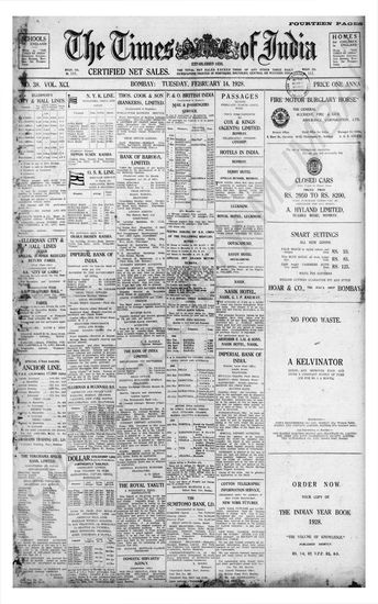 Times of India, February 14, 1928.