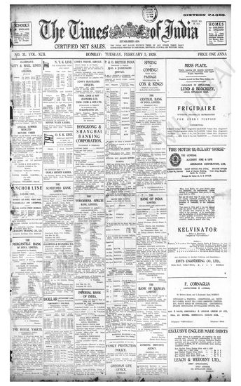 Times of India, February 05, 1929.
