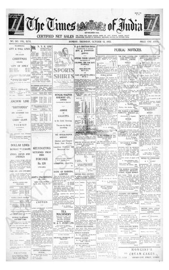 Times of India, October 12, 1933.