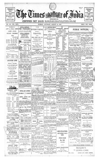 Times of India, August 12, 1933.